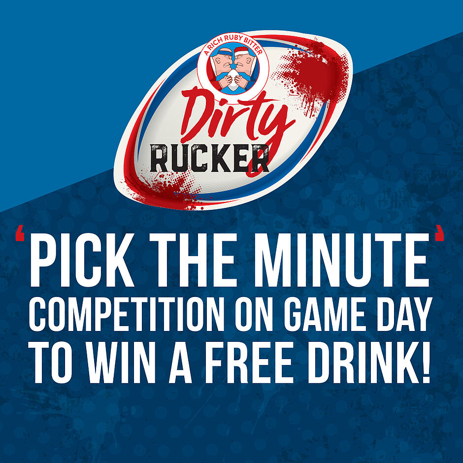 Secure your Matchday Beer Card any time ahead of the game at the bar or when pre-booking a table. Pay on the day. Cost of the Matchday Beer Card to be paid upfront in return for your card. Each card is redeemable for 4 pints of Wadworth Dirty Rucker for the price of 3. Must be used on the same day of issue, only valid for 1 day on the date shown. Over 18s only.